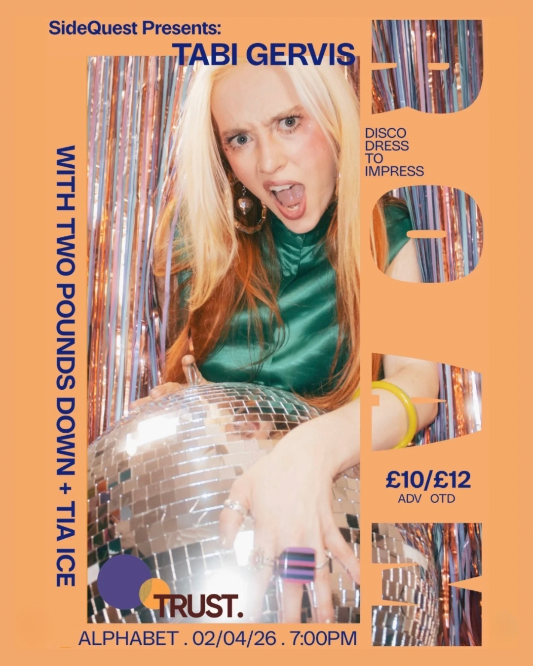 SideQuest Presents: TABI GERVIS - Single release party + Two Pounds Down + Tia Ice DATE: APRIL 2TIME: 7PMTICKETS: £10 + BFAGE: 18+ TICKETS